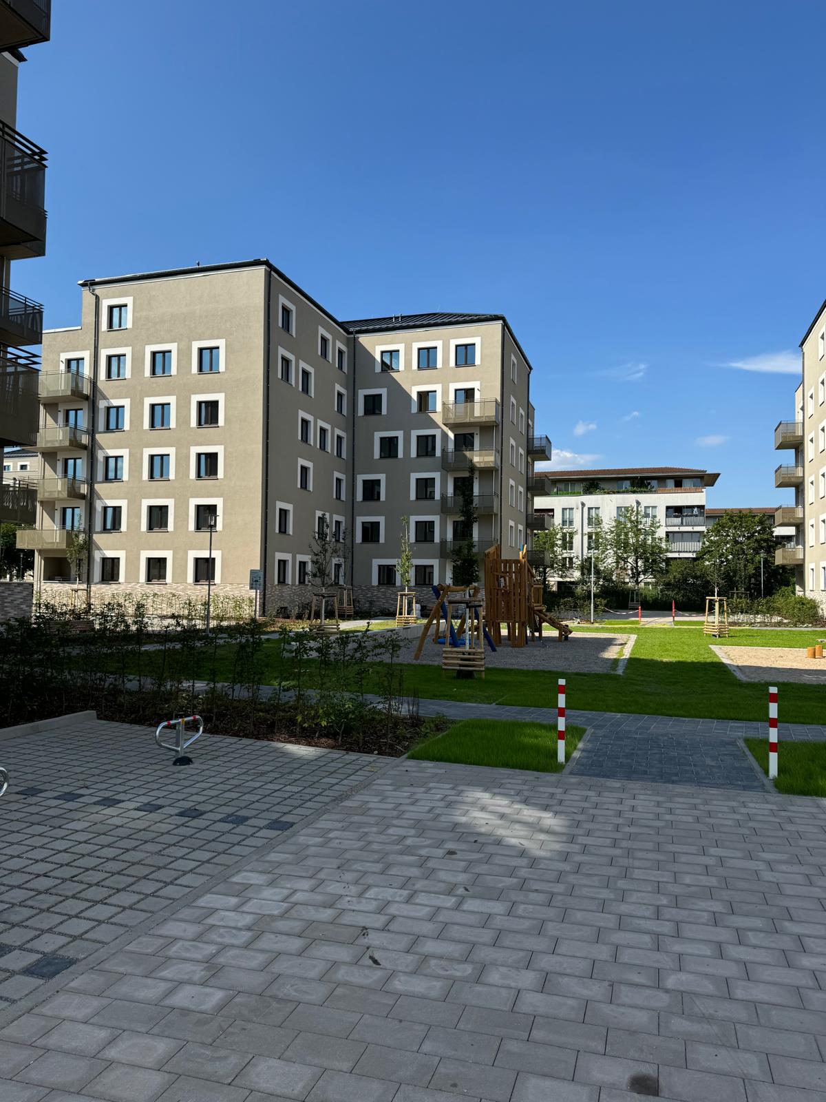 Es wurden insgesamt 17 Wohngebäude errichtet, die bezahlbaren Wohnraum für unterschiedliche Lebenssituationen bieten – von Singlewohnungen bis hin zu familiengerechten 5-Zimmer-Wohnungen. Die Wohnflächen reichen von 35 m² bis 118 m². Alle Wohnungen verfügen über Balkone oder Terrassen, sind vollständig barrierefrei und mit einem Mieterkeller ausgestattet.